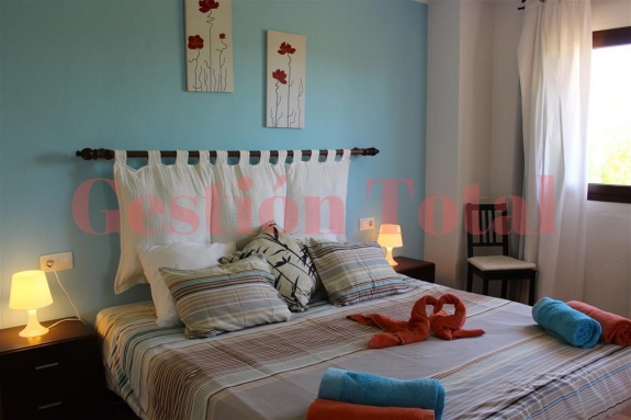 - Planta inferior se encuentran 2 dormitorios dobles, la cocina totalmente equipada (con entrada independiente desde el exterior), el salón-comedor, un aseo, el recibidor y, en el exterior, la terraza de unos 60 metros cuadrados que conduce a la piscina, jardín y barbacoa.