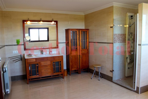 - Planta superior se encuentran 2 habitaciones dobles en suite con vestidores, una habitación doble, la lavandería y una terraza superior de unos 60 metros cuadrados, a la cual se accede desde dos habitaciones de la planta superior y desde la lavandería.